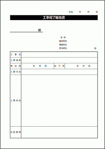 工事完了 報告書 Excel 無料テンプレート「01724」は書き方サンプルにも適切。