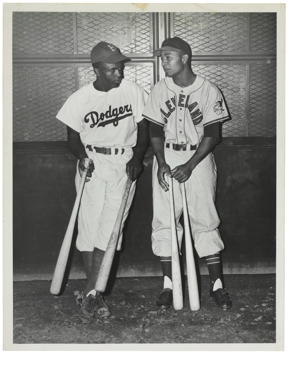 ジャッキー・ロビンソンとラリー・ドビー、1947年頃 写真 白黒。