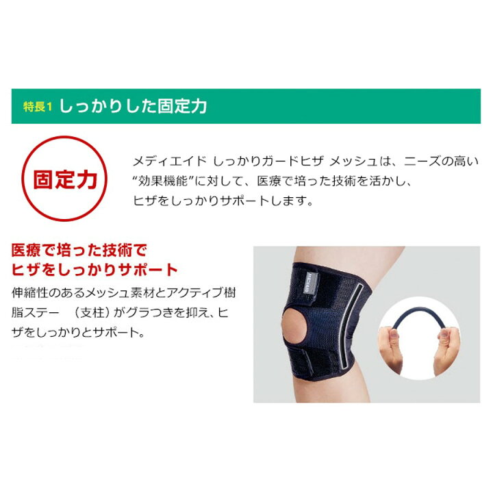 20%OFF・旧仕様品・医療メーカー膝サポーター メディエイド しっかりガードヒザ メッシュ 公式 日本シグマックス 医療用 左右兼用 男女兼用スポーツ 階段 膝の痛み 半月板 膝関節 靭帯 薄手 通気性 吸水速乾 敬老の日 MEDIAID ひざ ヒザ。