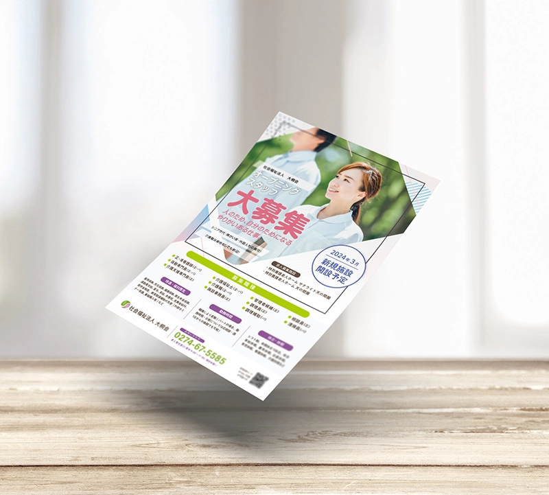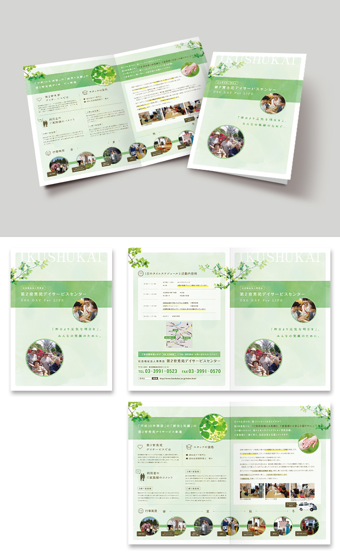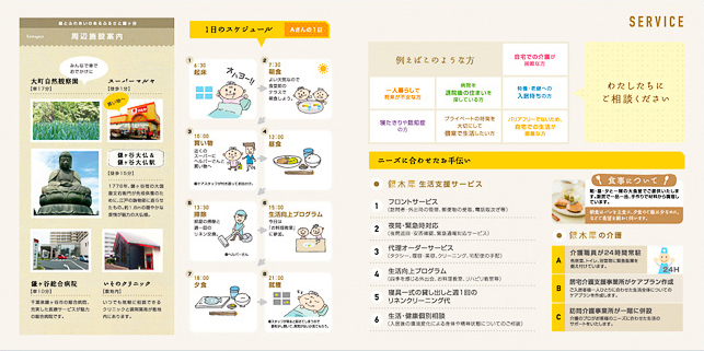 介護施設のパンフレット・リーフレット制作事例 - 印刷デザイン本舗 さいたま市 浦和・大宮。