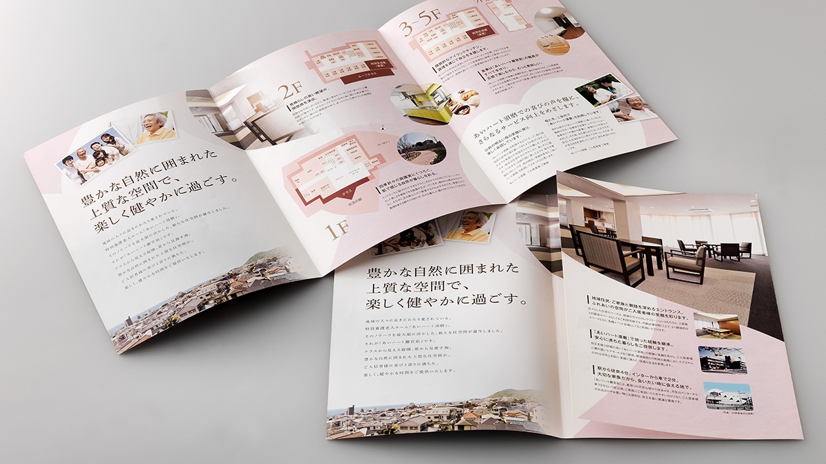 老人ホーム 施設紹介パンフレット会社案内パンフレット作成のグラデザ。