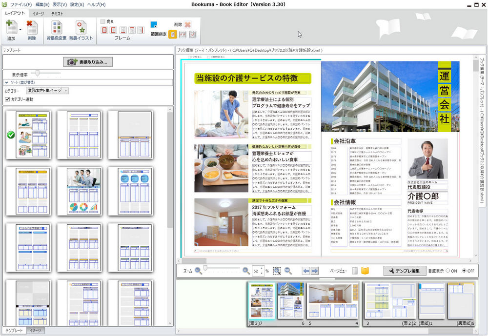 介護施設パンフレット事例 介護老人保健施設100人のデザイナ。