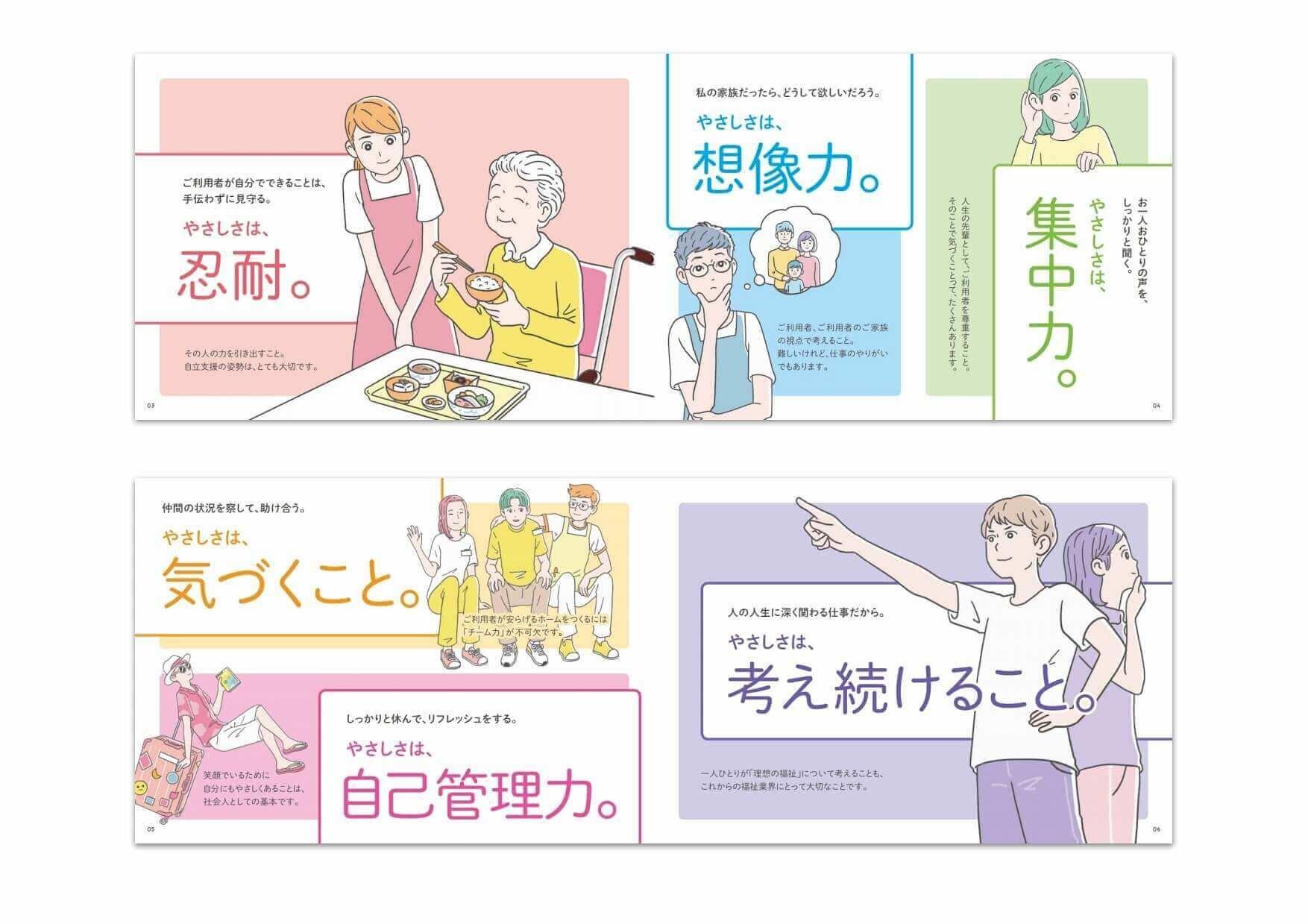 介護関係の採用パンフレットデザイン実績 業種別パンフレット制作実績ブログパンフレット制作.jp。