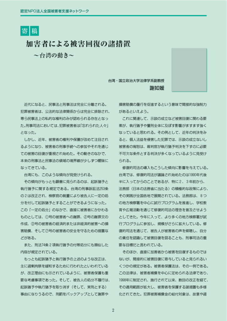 加害者による被害回復の諸措置~台湾の動き~学ぶ犯罪被害者支援デジタルライブラリーDigital Library for VictimSupport。