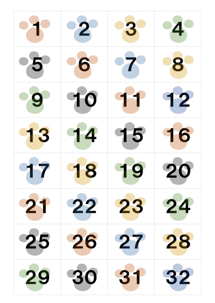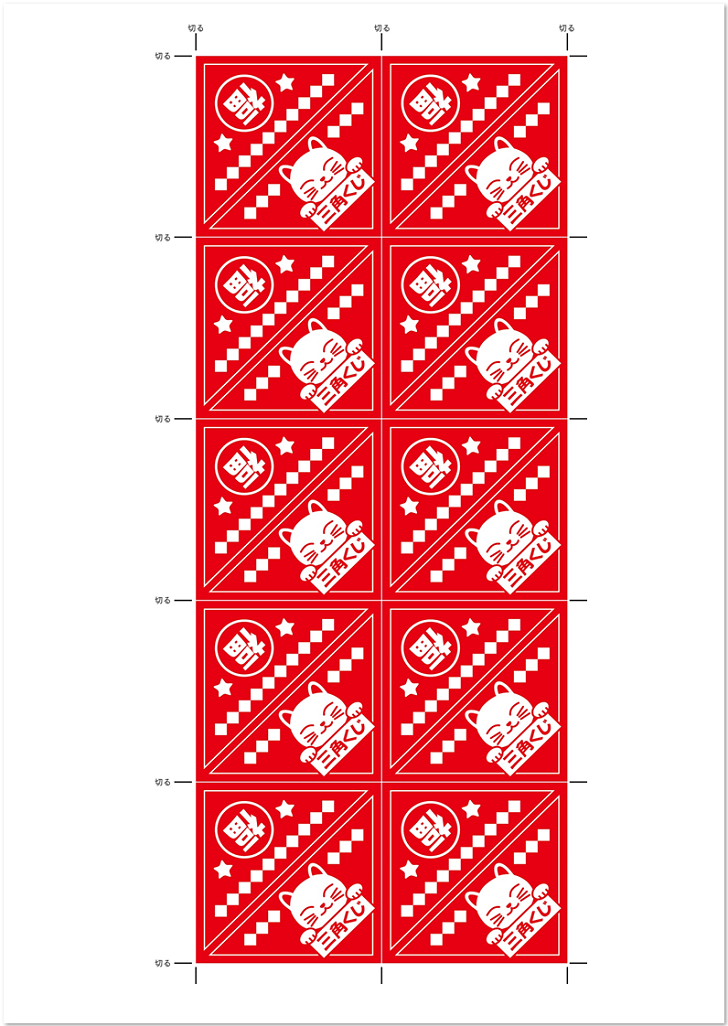 かわいい&おしゃれな番号札 猫・A4・18分割 三角くじとしても利用可能な素材 猫のイラス。