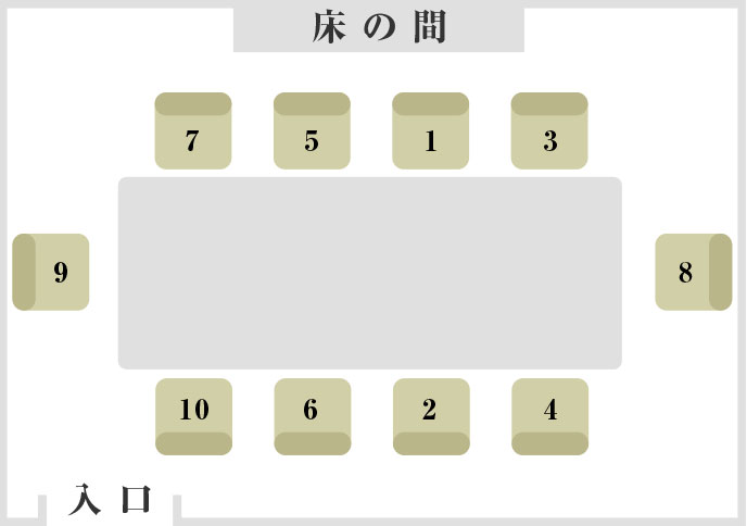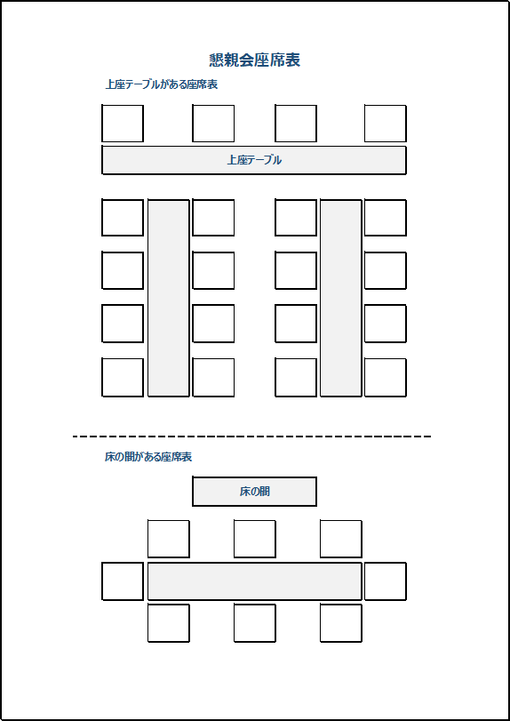 懇親会座席表Excelテンプレート上座・床の間・円卓の座席配置。