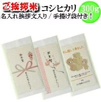 ちょっとしたご挨拶や御礼の品に最適!引越し 転勤 退職 新築 工事 景品 粗品 開店 記念品 周年事業 挨拶 ご挨拶 プチギフト 御礼 開店 上棟式 ご 挨拶米 新潟産コシヒカリ300g 約2合 真空パック プラス100円で魚沼産に変更可 お米 名入れ 引越し時のご挨拶に 挨拶。