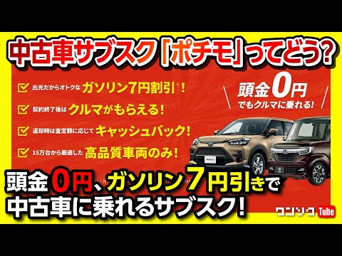 中古車サブスク「ポチモ」ってどうよ 頭金0円! スマホで完結! 自宅に納車! 満期になったら車が貰える?! ガソリンが7円引き?!出光興産×オートサーバーの中古車サブスク「pochimo」 - YouTube。