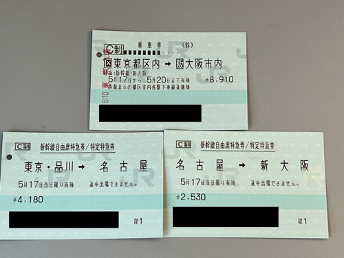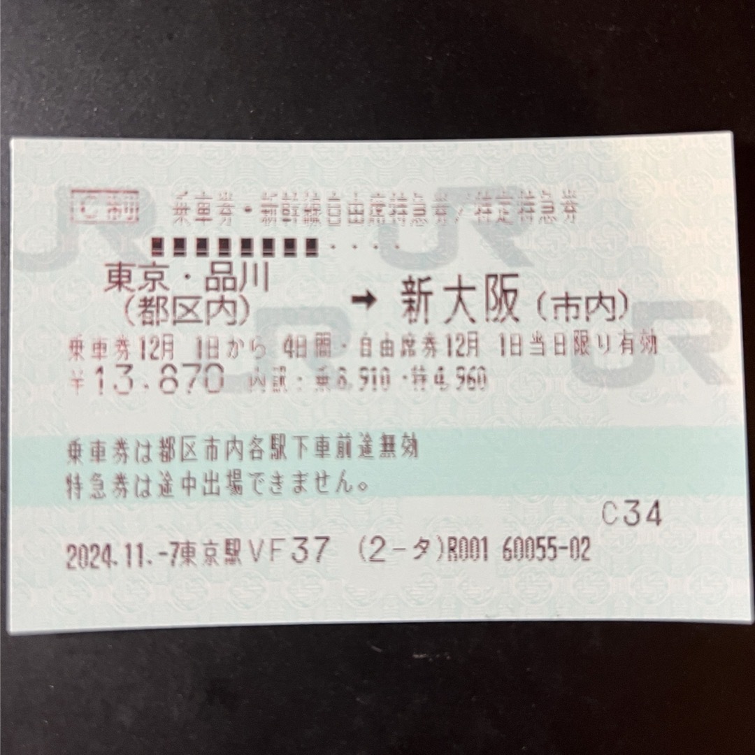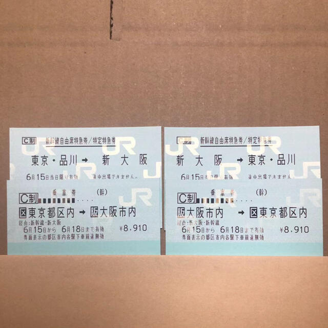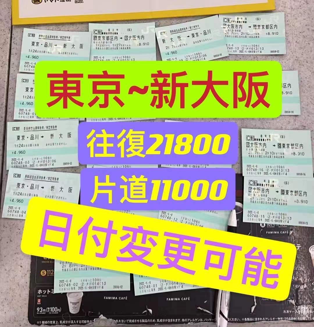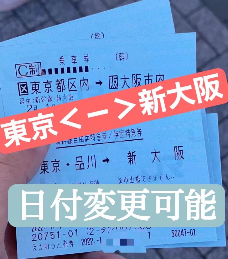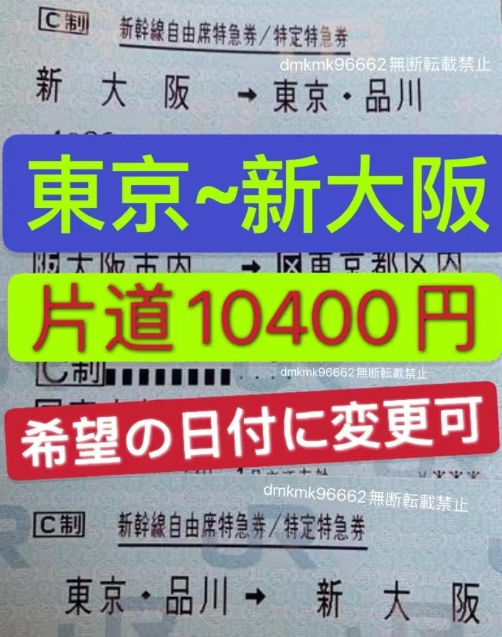 東京都区内 大阪市内 新幹線自由席 特急券 日付変更可能。