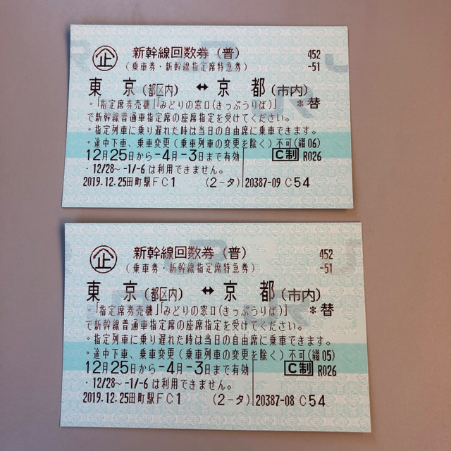 JR新幹線 日付変更可 東京⇔京都 自由席 乗車券+自由席特急券。