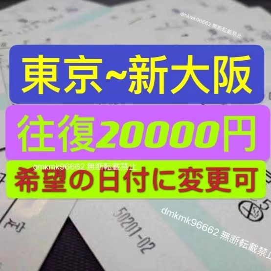 東京~新大阪 日付変更可 東海道新幹線チケット 往復 自由席乗車券+特急券 ☆逆でも同料金☆ 既日発券OK 新幹線回数券のぞみ。