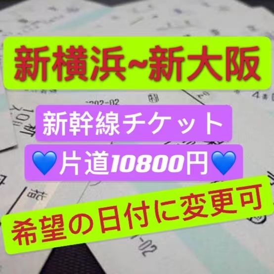 新横浜~新大阪 日付変更可 東海道新幹線チケット 片道 自由席乗車券+。