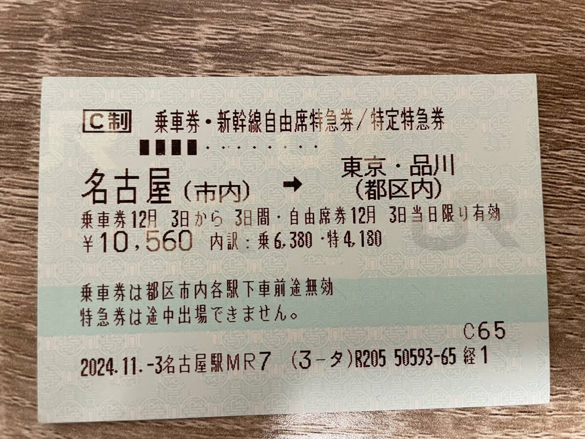 名古屋⇔東京 日付変更可 東海道新幹線チケット 片道 自由席乗車券+特急。