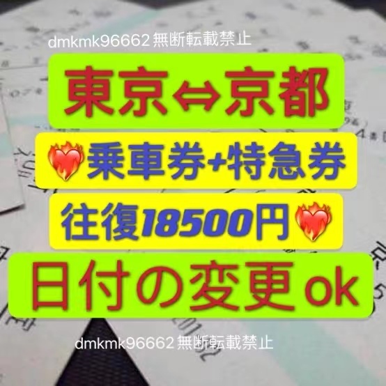 東京~京都 日付変更可 東海道新幹線チケット 往復 自由席乗車券+特急。