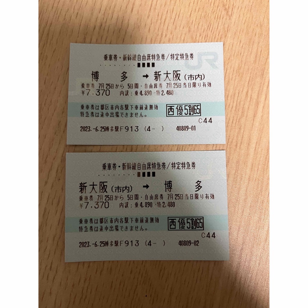 乗車券+新幹線自由席特急券 大阪-博多 往復 6 28~29 変更可。
