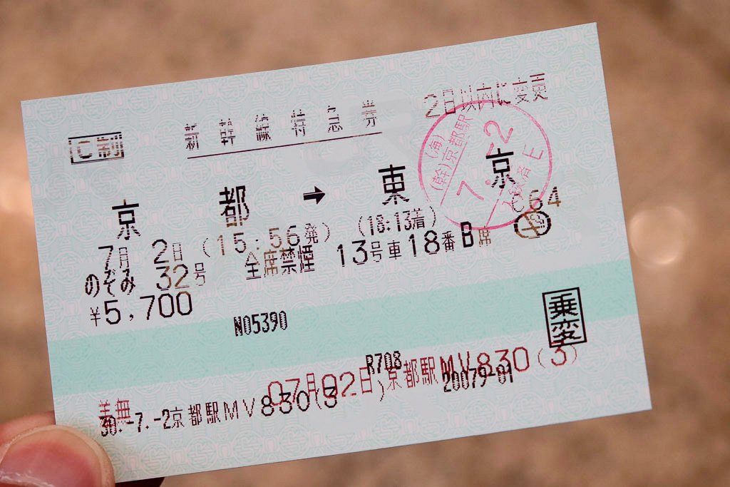 東京~京都 日付変更可 東海道新幹線チケット 片道 自由席乗車券+特急。