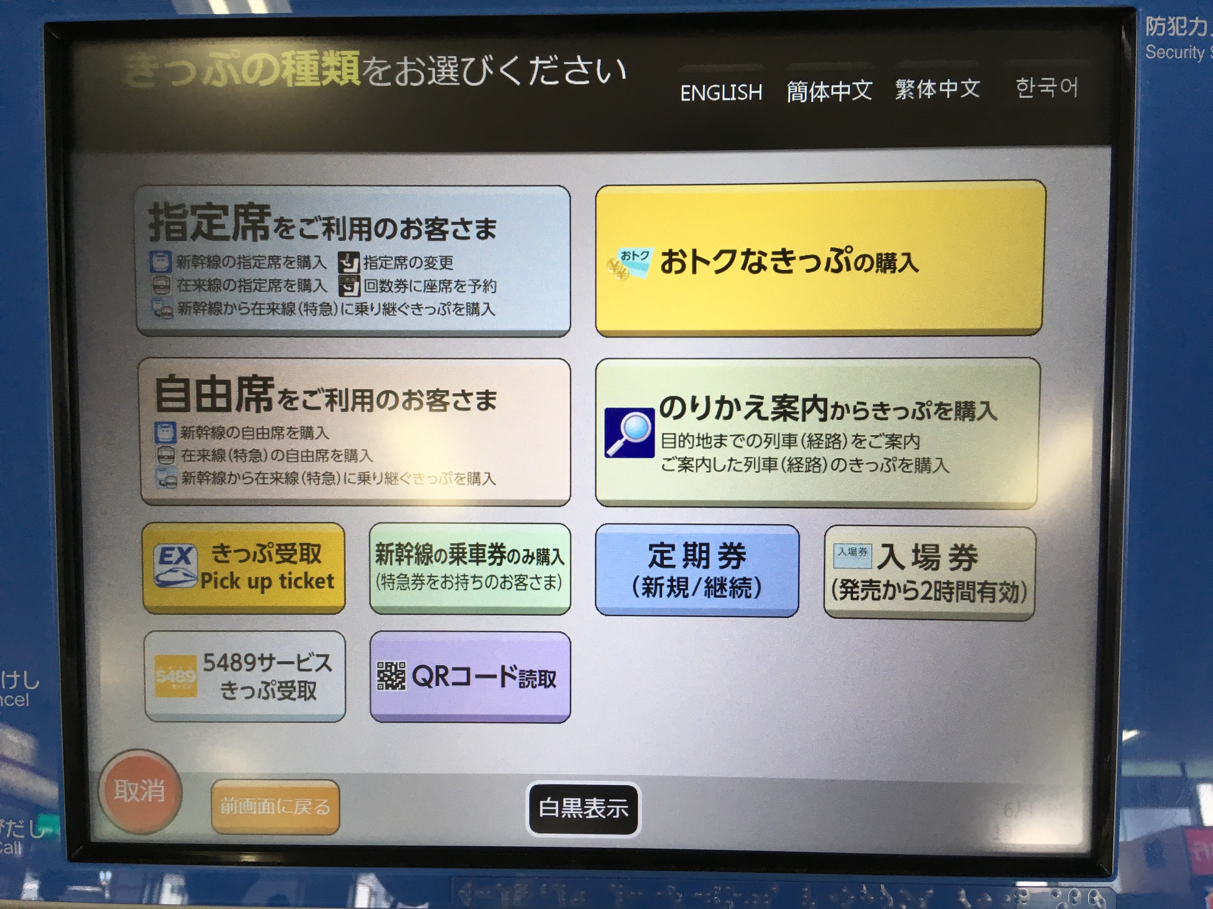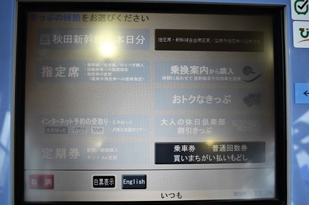 指定席券売機での新幹線自由席特急券の日付変更 - onの日記。