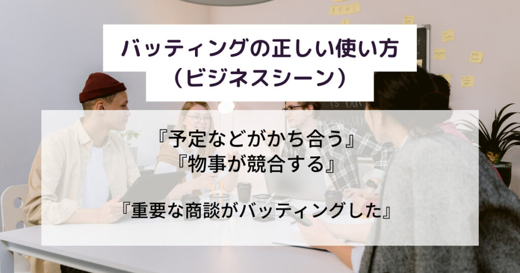 バッティングする」敬語の意味とビジネス例文集。メール作成&言い換えの要点KAIRYUSHA – ビジネス学習メディア。