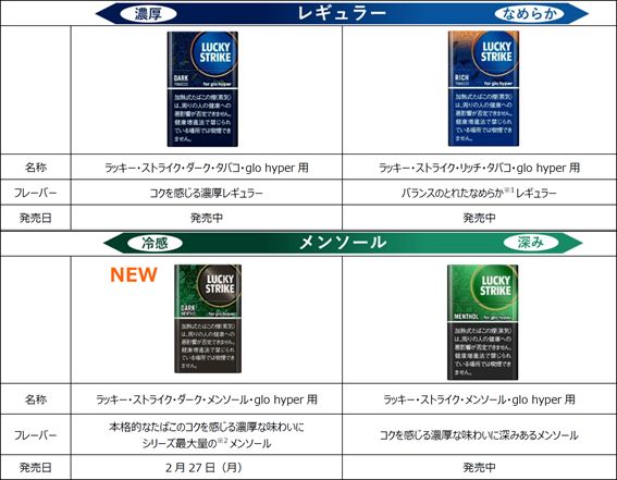 たばこ本来の濃厚な味わいが特長のglo TMhyper専用「ラッキー・ストライク」から新たに本格冷感メンソール2銘柄を2月27日 月 より全国で順次発売企業リリース日刊工業新聞 電子版。
