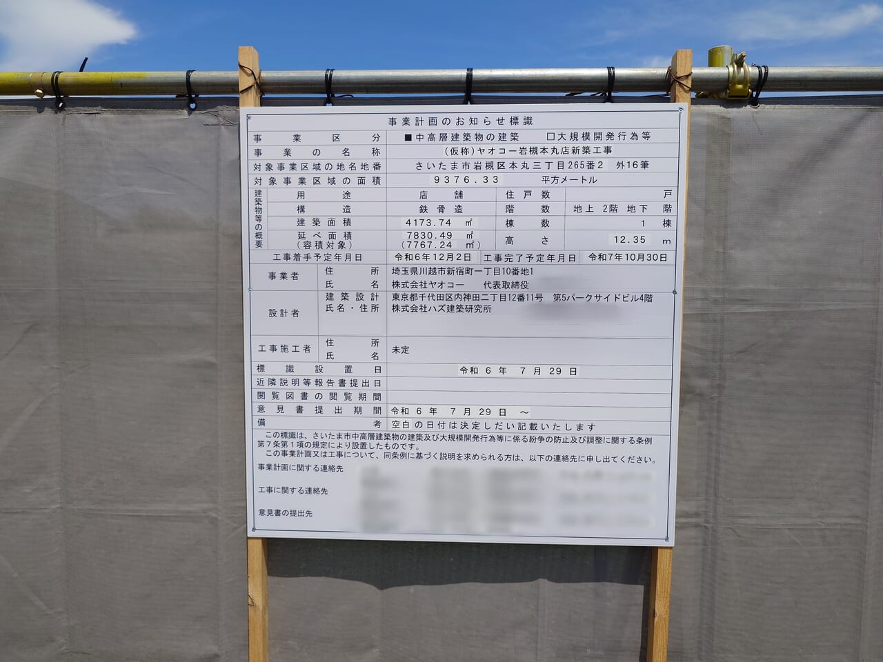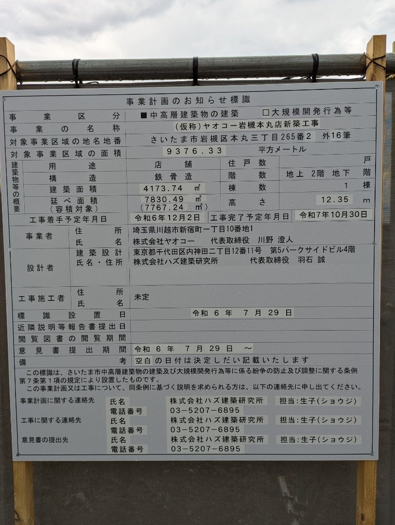 ヤオコー岩槻本丸店新築工事 仮称 2025年10月30日完成予定埼玉県さいたま市Yさまは自由人。