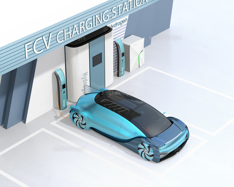 水素ステーションに水素ガスを充てんしている自動運転FCVのイメージの写真素材FYI04646217ストックフォトの QleanMarket キュリンマーケット。