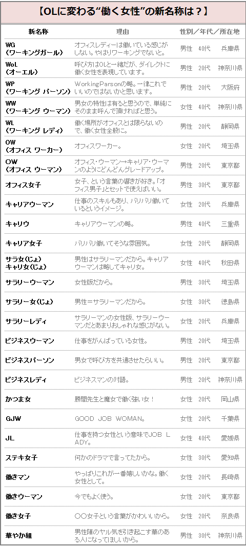 OL”に変わる新名称は?「サラ女」、「キャリ女」に「働き女子」など。