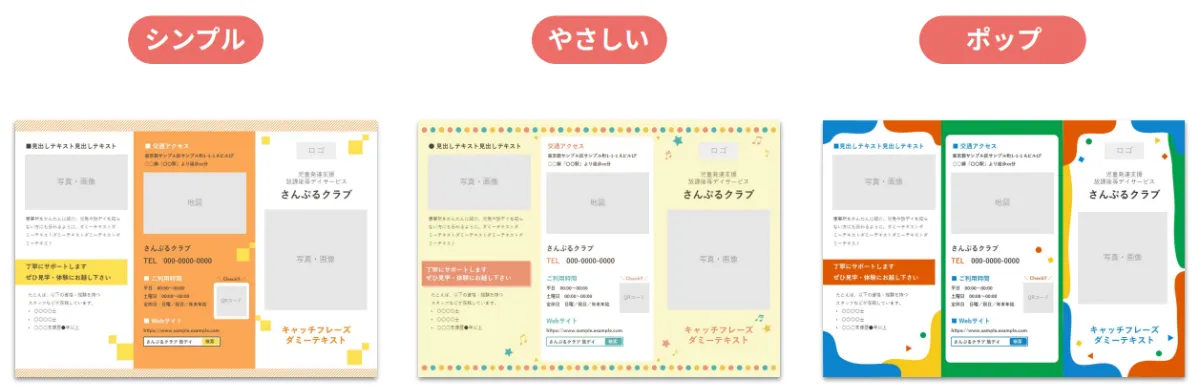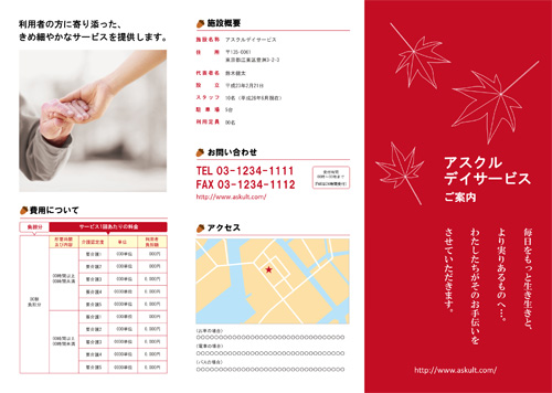 デイサービス三つ折表の無料チラシテンプレート-パワポンbyアスクル。