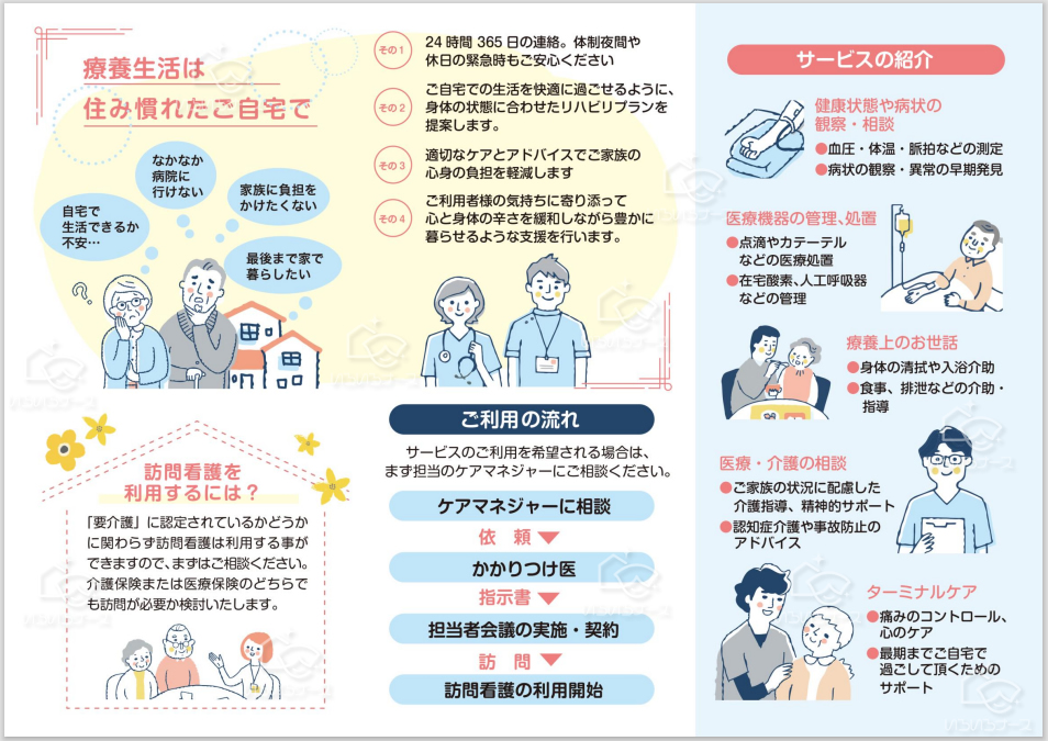 訪問看護ステーション三つ折りパンフレット無料ダウンロード 2 リハビリ無しバージョン│いろいろナース看護師の独立と訪問看護を応援するwebメディア。