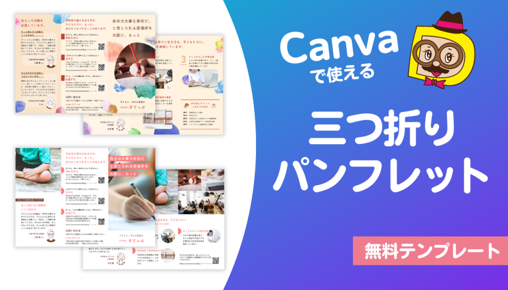 NPO向けCanvaテンプレート:三つ折りパンフレット。