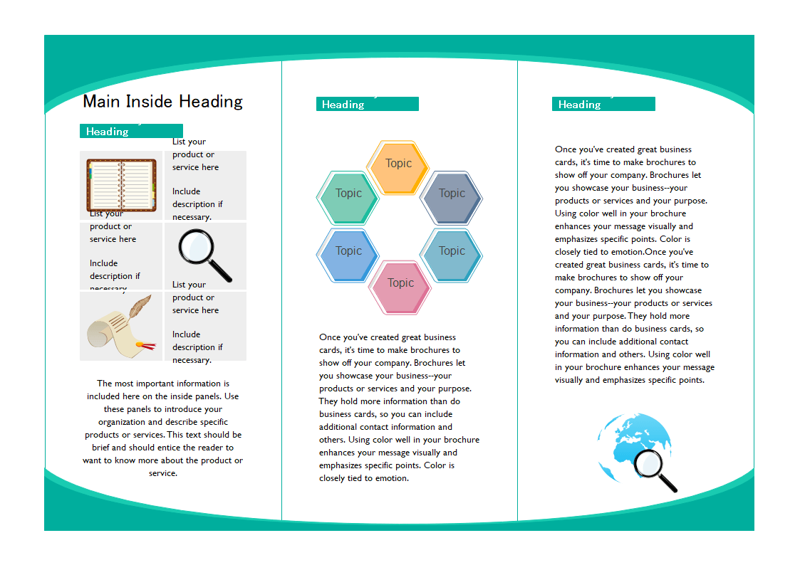 巻き三つ折りA4の1 3仕上がりパンフレットの無料デザインテンプレート印刷のラクスル。