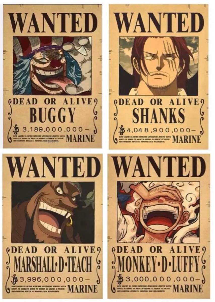 ワンピースONEPIECE 手配書懸賞金ポスター4枚セット。