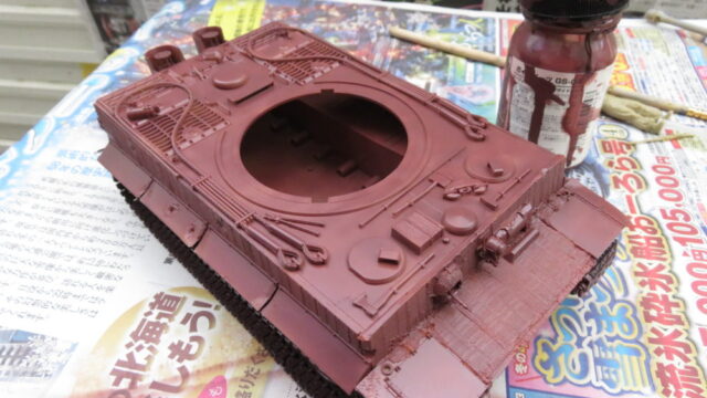 ティーガーI 戦車模型は塗装前に「下地塗装」をすると良いですよ。