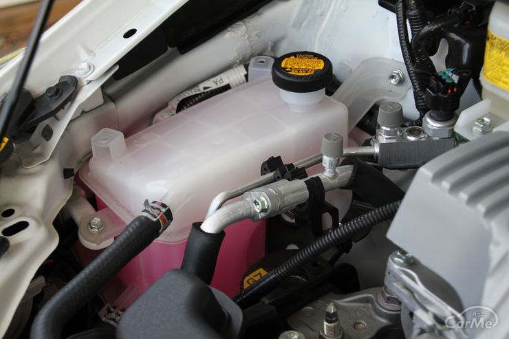 これの中にはどんな液体が入ってるべき?2013年のプリウス。ピンク色 の液体?少なすぎる?少なすぎるとどうなるの?これにはどんな液体を入れればいいの?2ヶ月前のオイル交換の時に、なんでお店の人は何も言わなかったんだろ??: r prius。