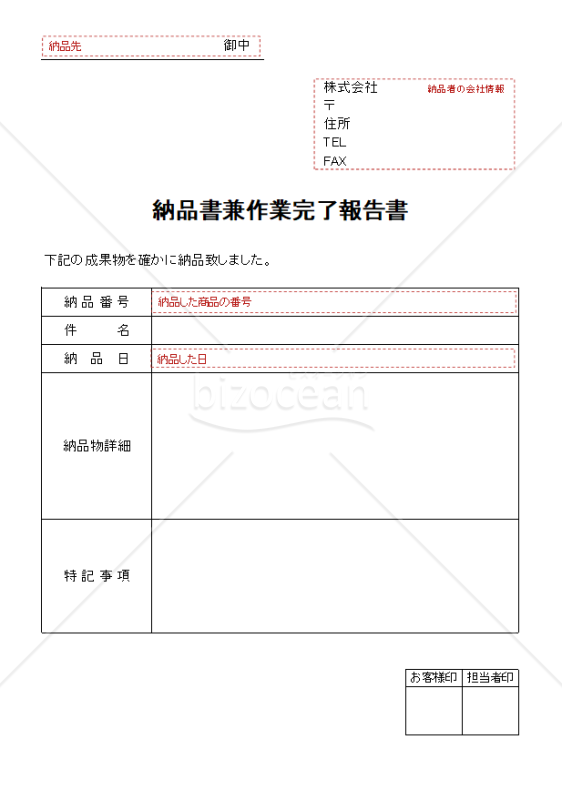 納品完了報告のメール文例テンプレート Word・ワード使いやすい無料の書式雛形テンプレート。