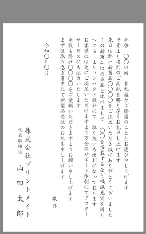 お礼状 商品 ビジネス文例とポイント1枚~即日印刷プリントメイト。