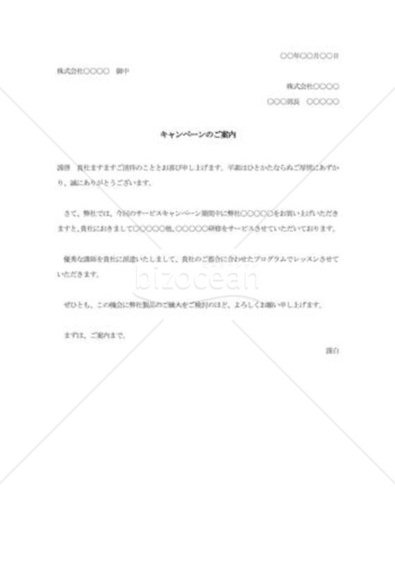 キャンペーンの案内メールの書き方と例文ビジネス文例集 テンプレートワークス。