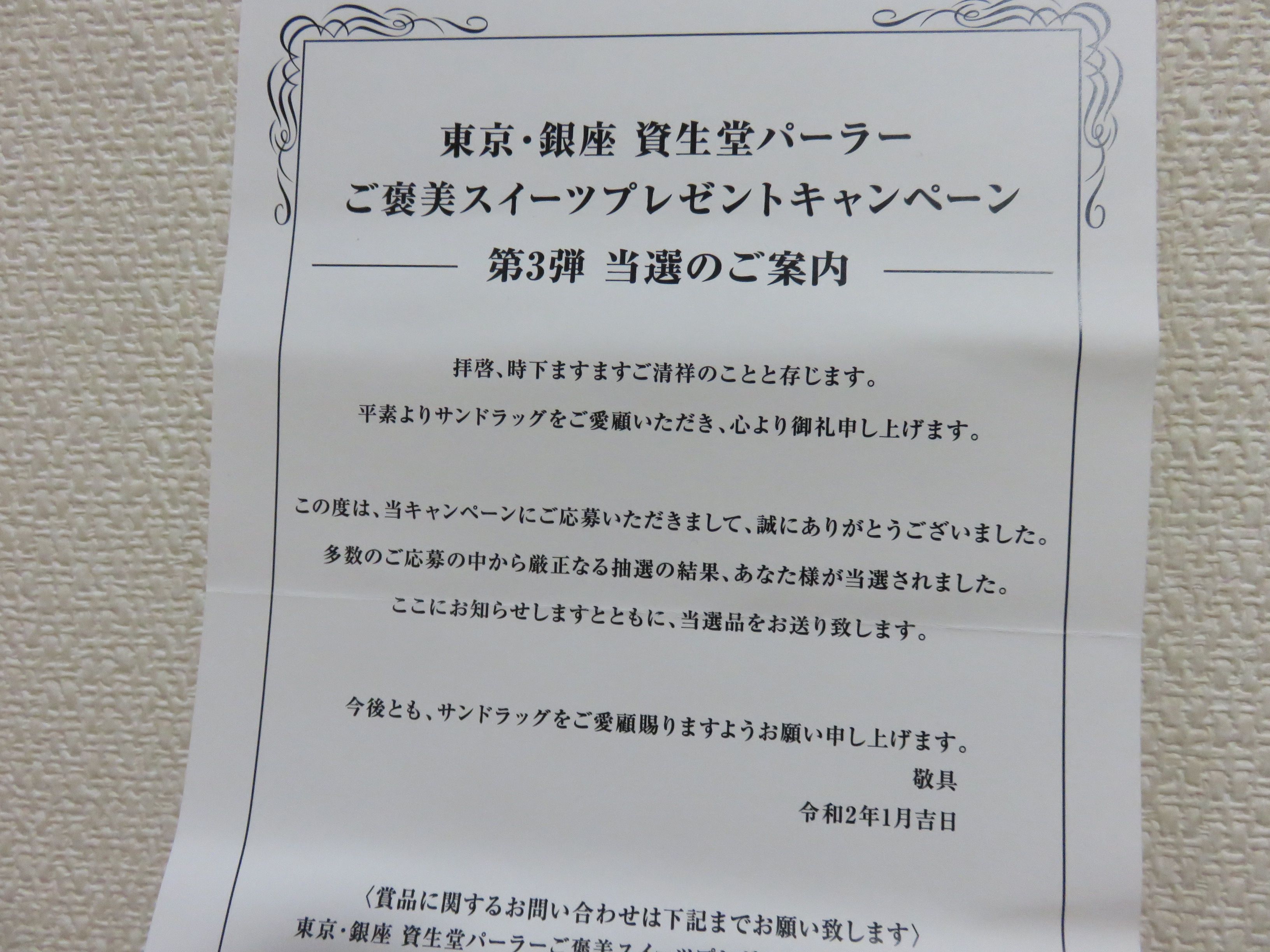 当選 サンドラッグ 資生堂パーラーご褒美スイーツプレゼントキャンペーンdonのブログ - 楽天ブログ。