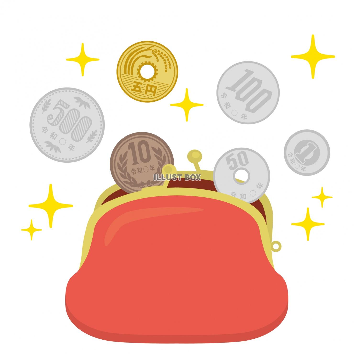 がま口財布と小銭・お金のイラストイラスト無料・かわいいテンプレート。