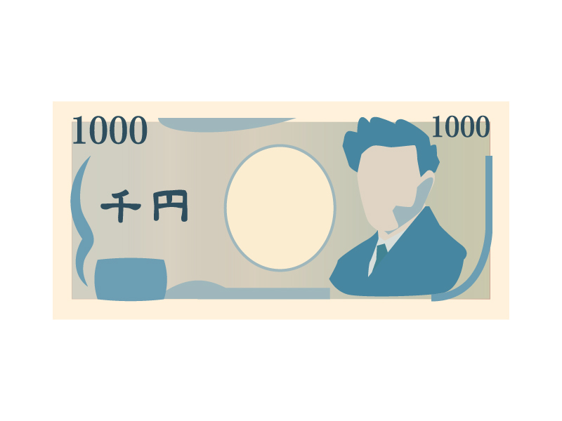 千円札・お金のイラストイラスト無料・かわいいテンプレート。