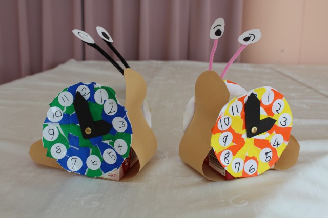 年長さん、時計製作「かたつむり時計」。 - 季節の行事で楽しい園生活を過ごせる名古屋市西区の国風第二幼稚園。