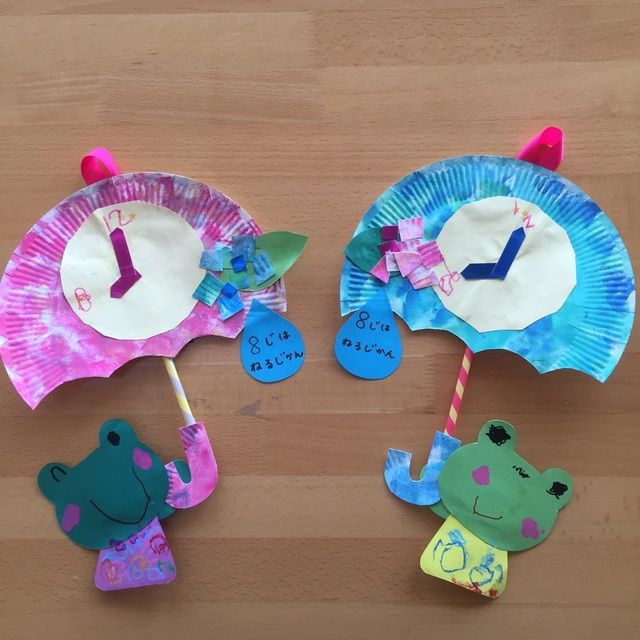 保育園 6月製作「時計」傘・紙コップ・折り紙の時計アイデア3種と簡単カエルの折り方保育士のお仕事静岡。