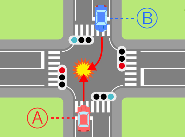 右直事故の過失割合はどうなる?自動車・バイクの場合と修正要素、片方だけの責任になるケース交通事故弁護士相談広場。