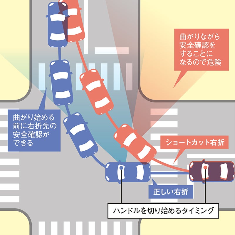 ショートカット右折が癖になると事故につながる可能性も 100人のドライバーを調査!JAF Mate Online。