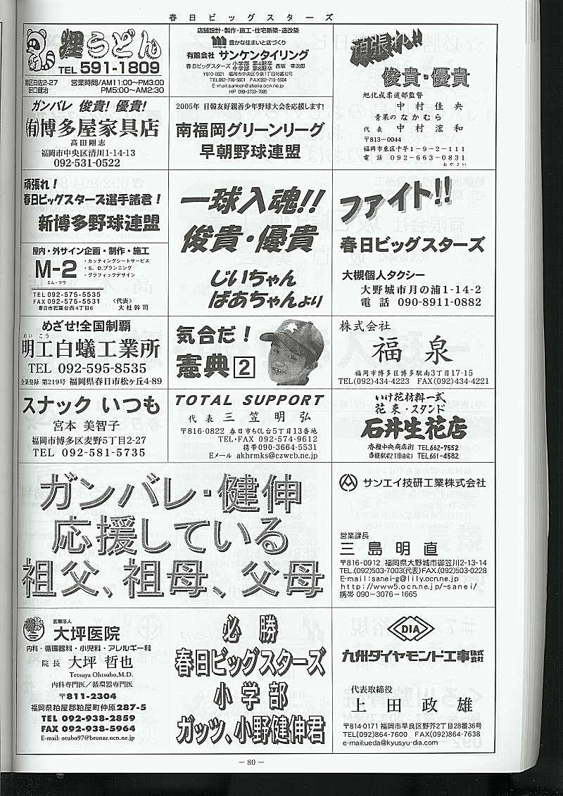 2006年日米友好親善少年野球大会ボーイズリーグ選手名簿広告参加のお願い。
