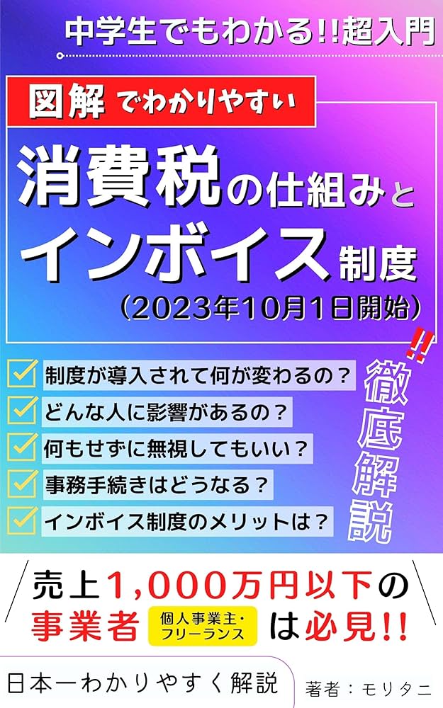図解でわかりやすい 消費税の仕組みとインボイス制度: 中学生でもわかる超入門!売上1000万円以下の事業者必見!モリタニ, 株式会社コムサグリ財務管理KindleストアAmazon。