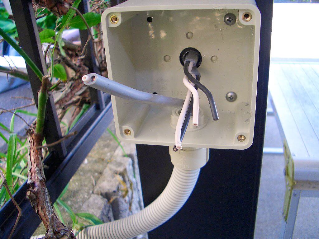 屋外用防水コンセント配線を教えてください。壁からは外灯用の黒、白配線コードが既- Yahoo!知恵袋。