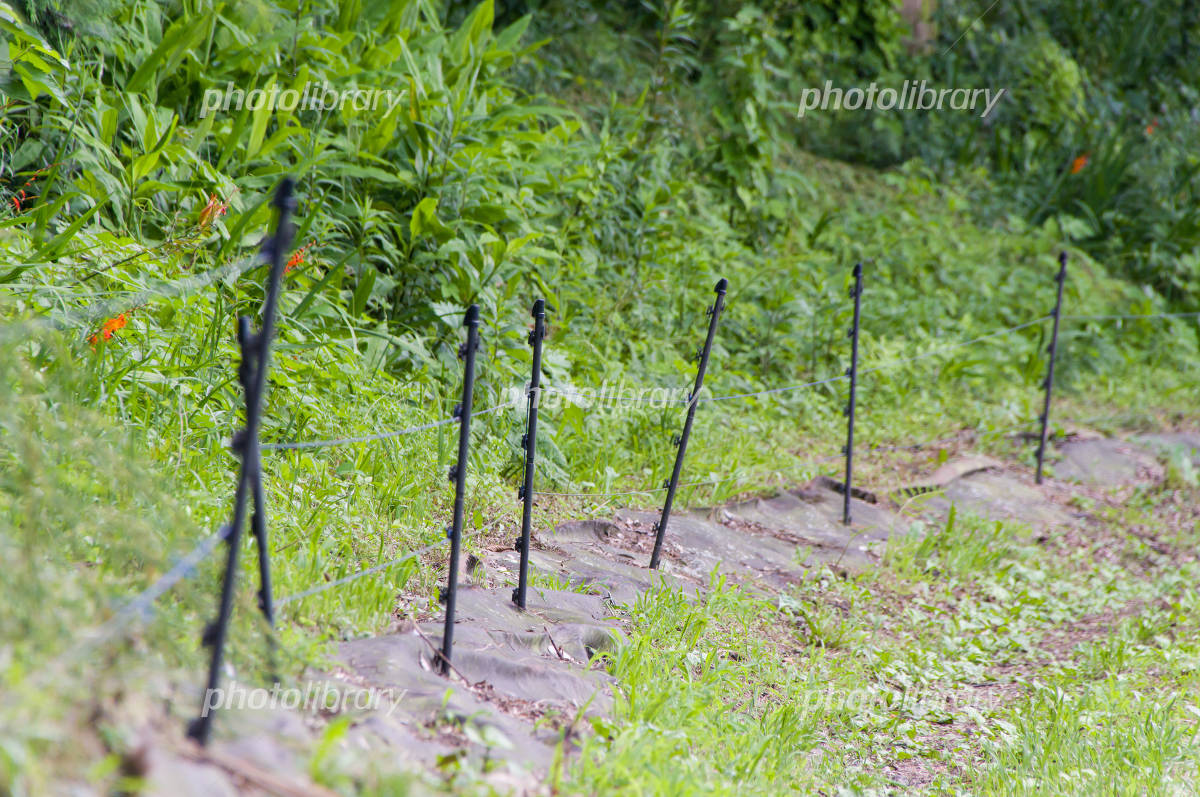 獣害対策の電気柵 26121020173 の写真・イラスト素材アマナイメージズ。