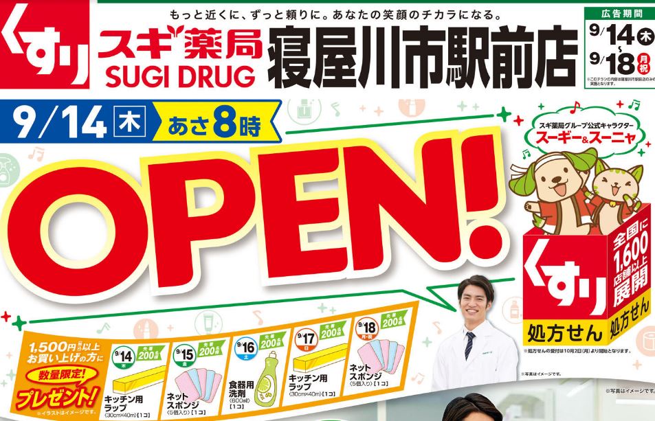 寝屋川市 9月14日、スギドラッグ寝屋川市駅前店がオープン! ドラッグストア激戦区に調剤薬局設置で参入!号外NET ピックアップ!大阪。
