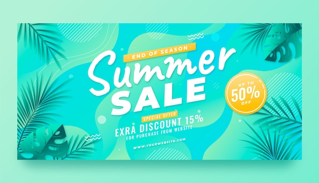 グラデーションサマーセール横長バナーテンプレートPremiumベクトル素材。