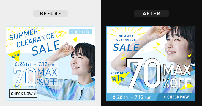 ECサイト内に設置するバナー作成題材:セール誘導「夏のセール特集」 - Web鍛 うぇぶたん。